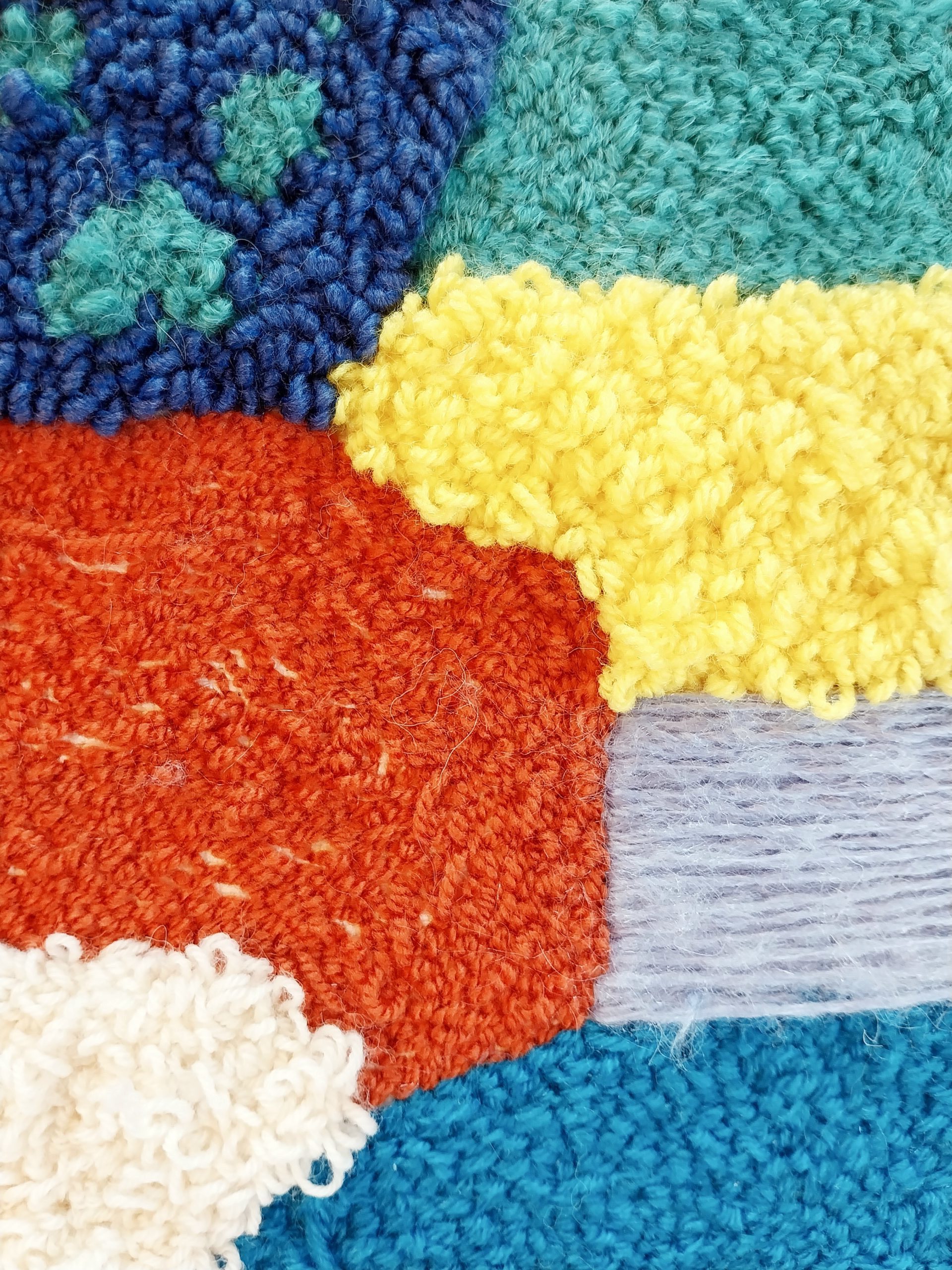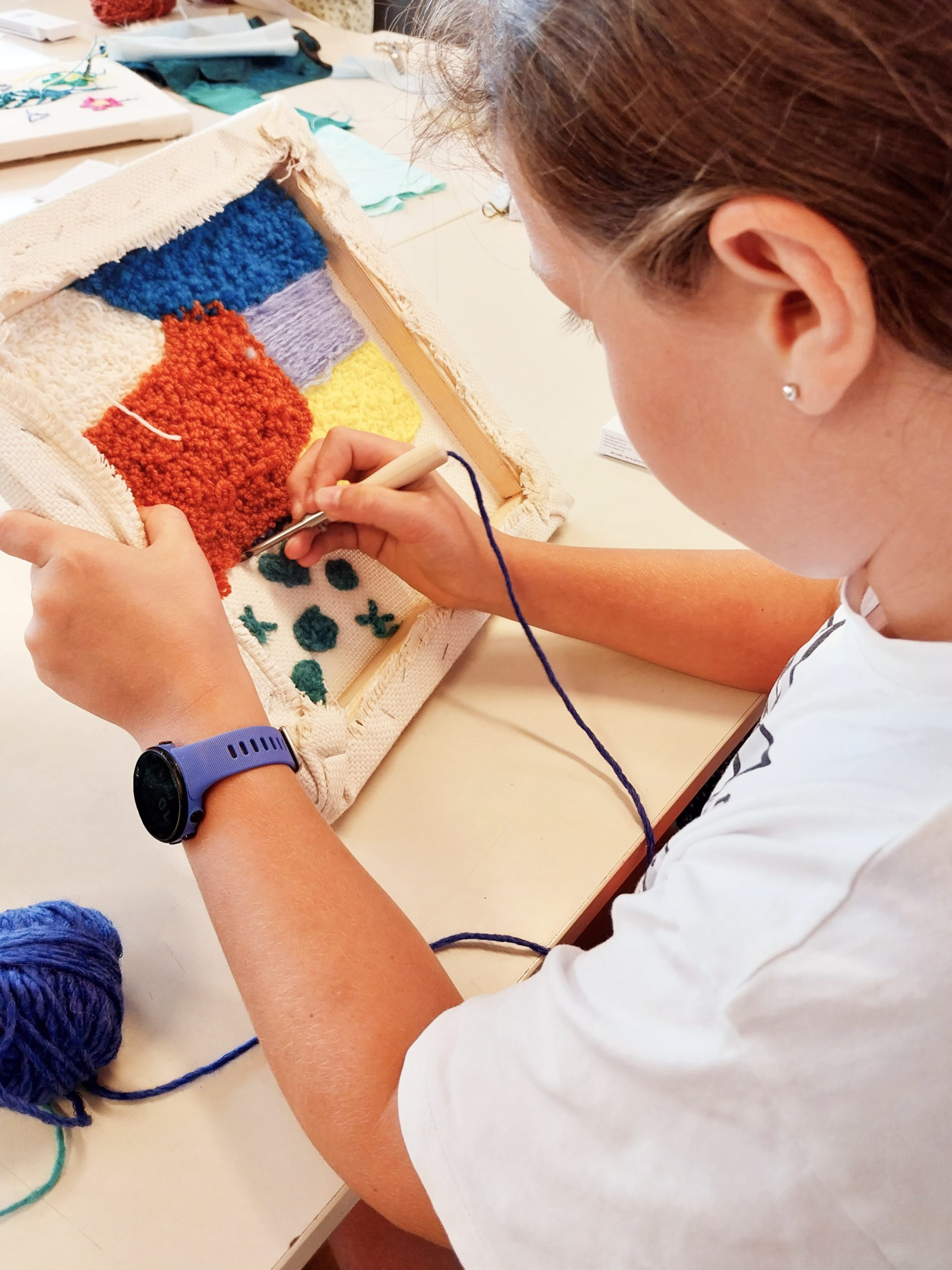 Découvre la technique du punch needle en exprimant ta créativité à travers un tableau abstrait. Youpiiiiie !